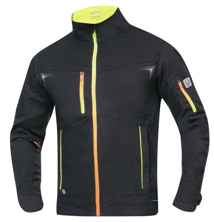 Blůza se stojáčkem má vysocefunkční ergonomický 3D střih SLIM FIT, který zvýrazňuje siluetu. Je vybavena průběžným zapínáním na zips krytkou brady, 1 zipovou náprsní kapsou, 1 zipovou kapsou na levém rukávu, 2 zipovými bočními kapsami,má nastavitelnou šířku rukávů a spodního lemu blůzy pomocí druků. Levá horní část blůzy je designována pro umístění firemního loga. Zadní díl blůzy je vybaven funkčním odvětráváním, trojité prošití v namáhaných partiích. Zvýšenou viditelnost uživatele zajišťují dynamické reflexní 3D potisky a hi-vis doplňky.