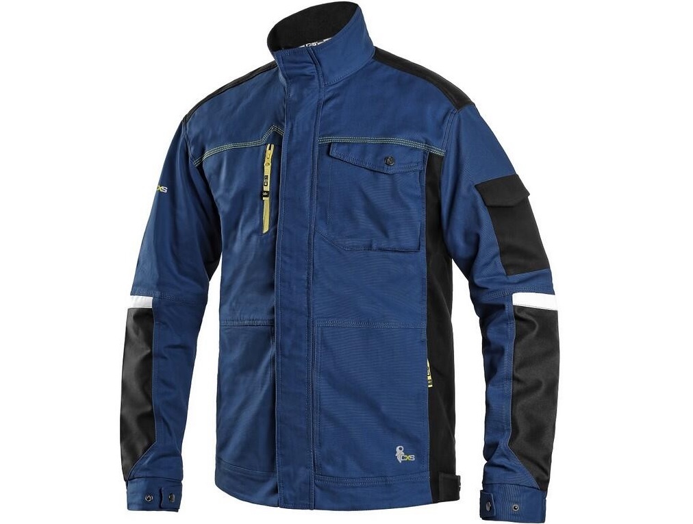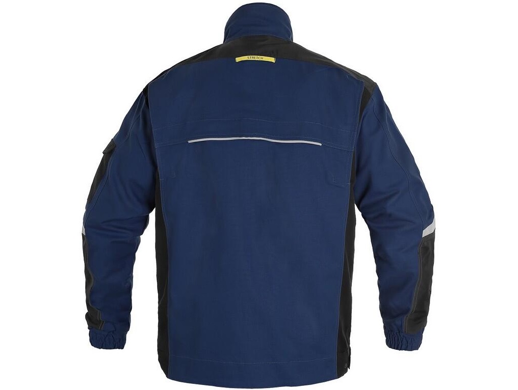 Pánská montérková blůza, strečová tkanina umožňující volný pohyb, ramena vyztužena 600D polyesterem, rukávy s nastavitelnou manžetou, kapsička s klopou na levém rukávu, kryté zapínání na zip a druky, náprsní kapsy - na druk a zip, boční kapsy na zip, regulovatelný pas, větrání na zádech, reflexní doplňky.