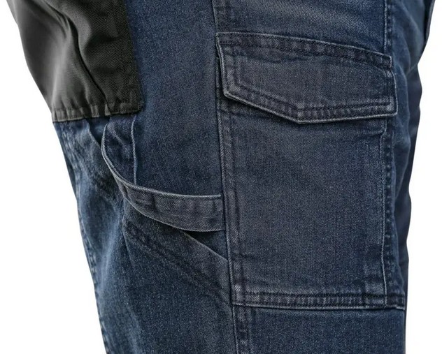 ánské džínové kraťasy, pas s poutky na opasek a plastovým přívěskem, 2 přední kapsy, 2 zadní kapsy z materiálu CORDURA, boční multifunkční kapsy, na pravé kapse poutko pro kladivo.