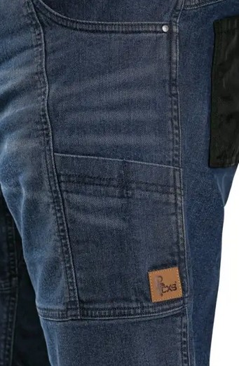 Materiál: 98 % denim bavlna 2 % elastan, 350 g/m2, Cordura: 95 % nylon 5 % elastan, 255 g/m2.
