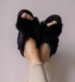 Pantofle Boa jsou lehké, měkké, ergonomicky tvarované. Dvojitý pásek přes nárt je lemován huňatým kožíškem a přináší maximální pohodlí. Protiskluzová podešev CoquiFlex™.