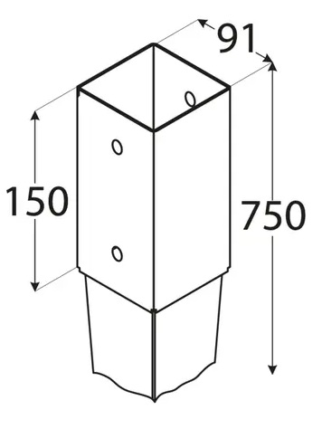 Kotvící čtyřhranný hrot slouží k upevnění pergol, dřevostaveb, plotů a jiných konstrukcí do hliněných podkladů bez nutnosti betonování.