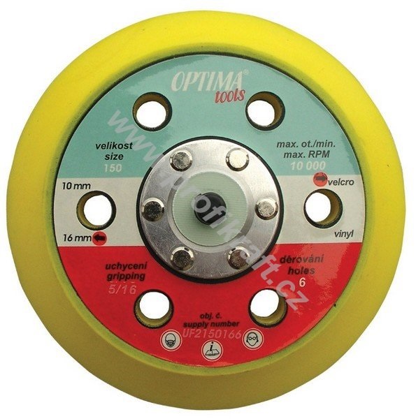 Pro kruhové výseky, suchý zip (SA331, EA343), do excentrické brusky, spodní deska je vyrobena z nárazuvzdorného syntetického materiálu, pěna z kvalitního polyuretanu.