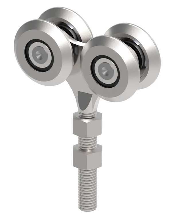 Jedná se o čtyřkolečkový vozík, což zajišťuje stabilní a plynulý pojezd brány v kolejnici.