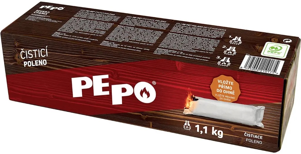 Čistící poleno PE-PO 1,1 kg g je vhodné k odstraňování sazí z komínů a kouřovodů.