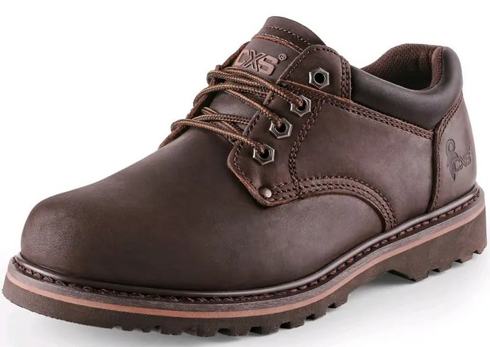 Pracovní polobotka, celokožená bez ocelové špice. Materiál: svršek z 1,6 - 1,8 mm činěné hovězí Crazy horse kůže, unikátní konstrukce Goodyear welted (prošitá podešev), podšívka: prodyšná oděru odolná polyesterová textilie, podešev: gumová, olejivzdorná, protiskluzová.