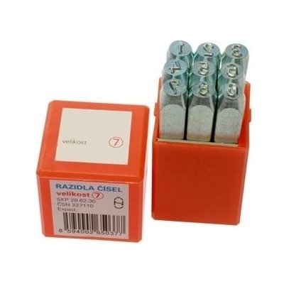 Razidla čísla 5 mm, levý ostrý profil, sada 9 ks