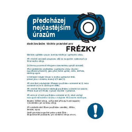 Pravidla bezpečné práce pro frézky, samolepka A3