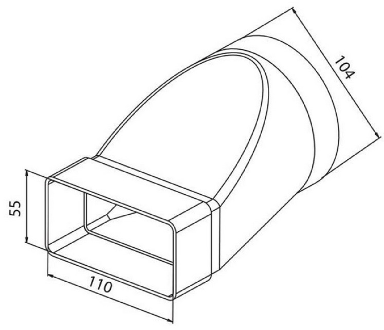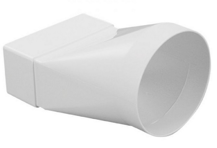 Použití: Přechodový kus je vhodný k propojení kulatého a plochého kanálu při zmenšeném prostoru. Pro připojení na kulatý kanál je třeba použít spojku CVO 107.