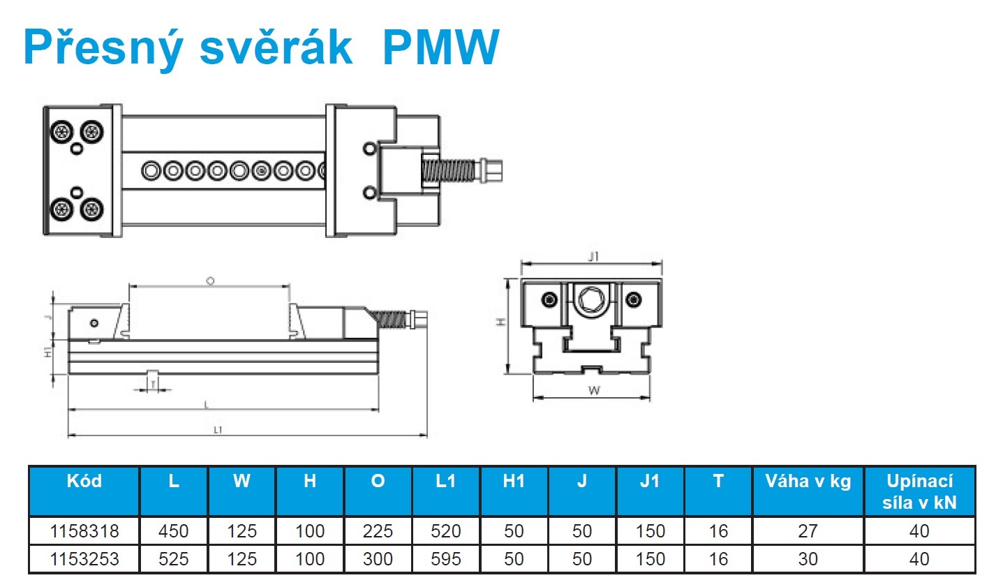 Přesný strojní modulární svěrák PMW150+, rozevření 300mm (předváděcí kus)