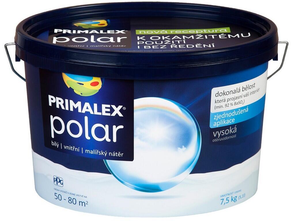 Díky pečlivému výběru nejkvalitnějších kalcinovaných vápenců a vysokému podílu titanové běloby garantuje nejvyšší stupeň „polární“ bělosti (min. 92% BaSO4). S Primalexem POLAR získáte dojem většího a vzdušnějšího prostoru vašeho interiéru. Splní tak i vaše nejnáročnější představy o exkluzivním matném vzhledu vašich stropů a stěn. Nová receptura zjednodušuje aplikaci a pomůže vám dosáhnout dokonalého výsledku.