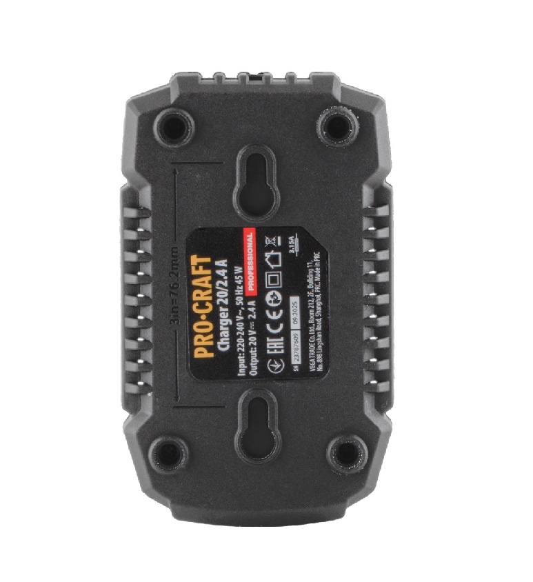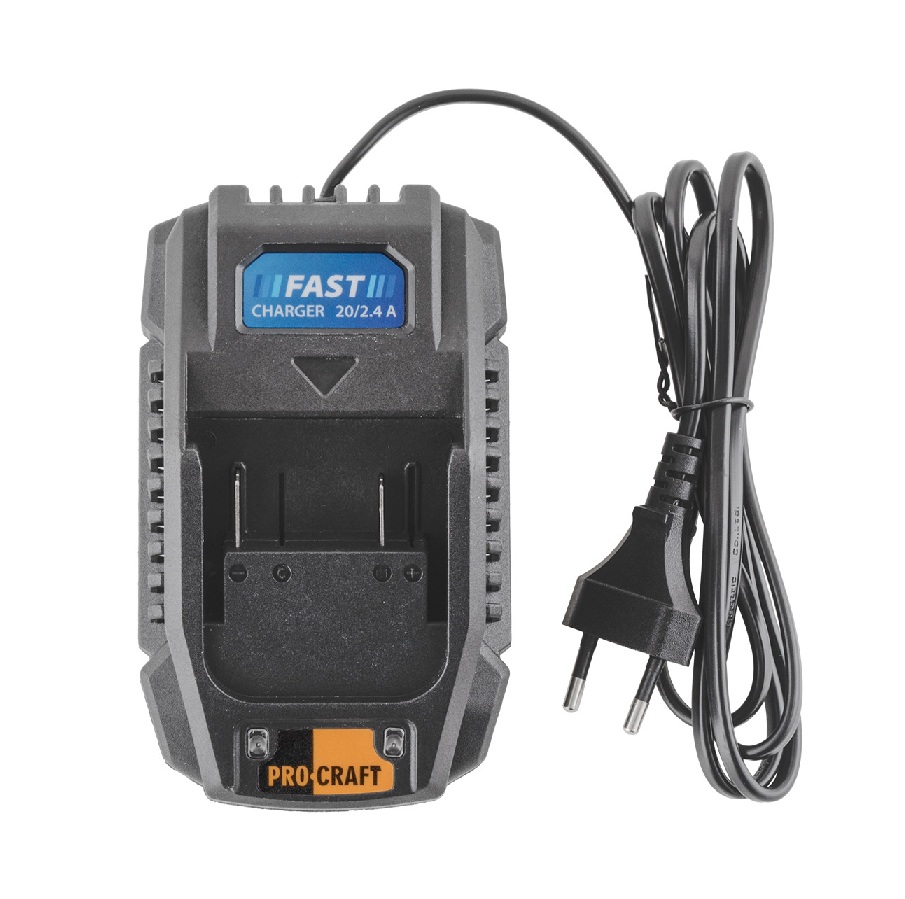 Nabíječka pro 20V Li-ion baterie Procraft 20/2.4A je výkonné a spolehlivé zařízení určené k efektivnímu dobíjení akumulátorů ze série 20V Procraft.