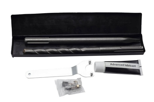 Součástí dodávky je sekáč, vrták a přepravní kufr.