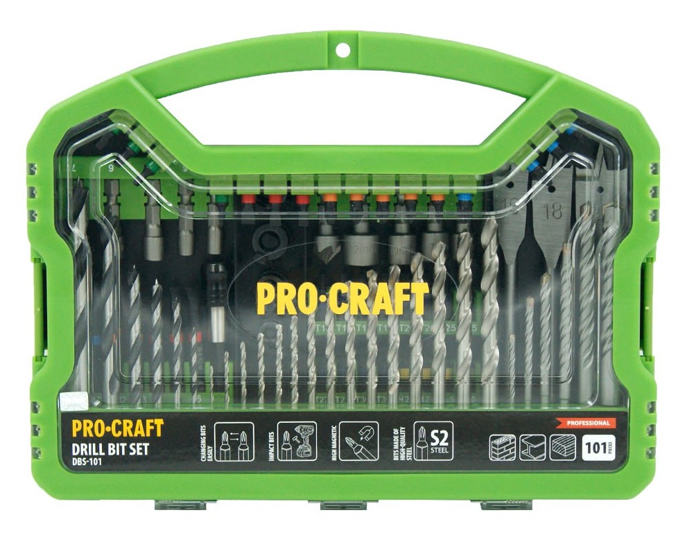 Univerzální sada Procraft DBS‑101 obsahuje celkem 101 dílů pro vrtání a šroubování do kovu, zdiva i dřeva.