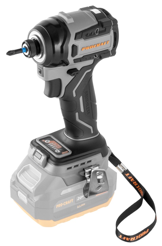 Aku rázový utahovák Procraft ID20A s bezuhlíkovým motorem, utahovacím momentem až 80-180 Nm a čtyřmi rychlostmi (0–3800 ot./min).