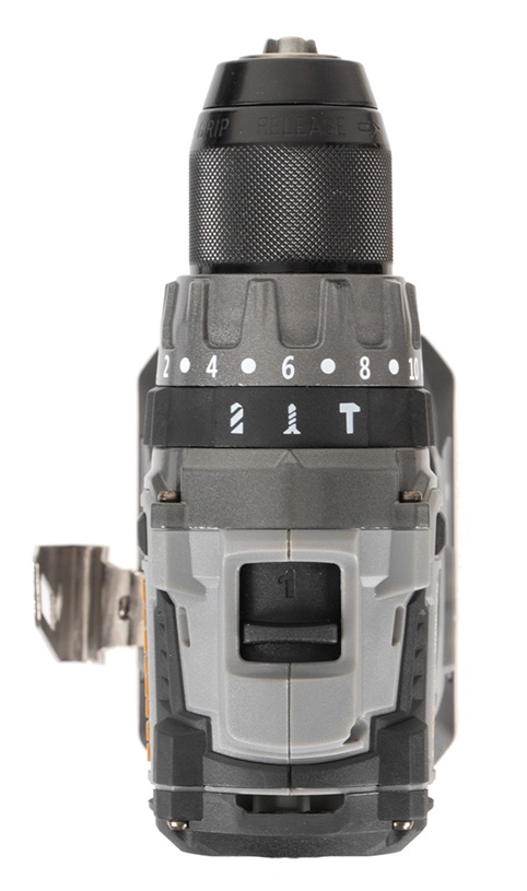 Šroubovák je vybaven možností vrtání s příklepem, což umožňuje snadné vrtání i do tvrdších materiálů, jako je beton nebo cihla, a rozšiřuje tak jeho univerzální využití.