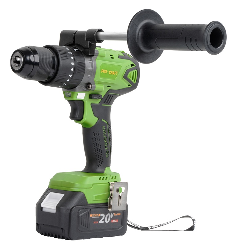 Pro těžké práce, jako je vrtání nebo jádrové vrtání, je šroubovák vybaven přídavnou rukojetí.