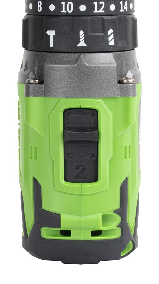 Pomocí ovladače otáček zvolte vysoké otáčky pro vrtání nebo nízké otáčky pro šroubování.