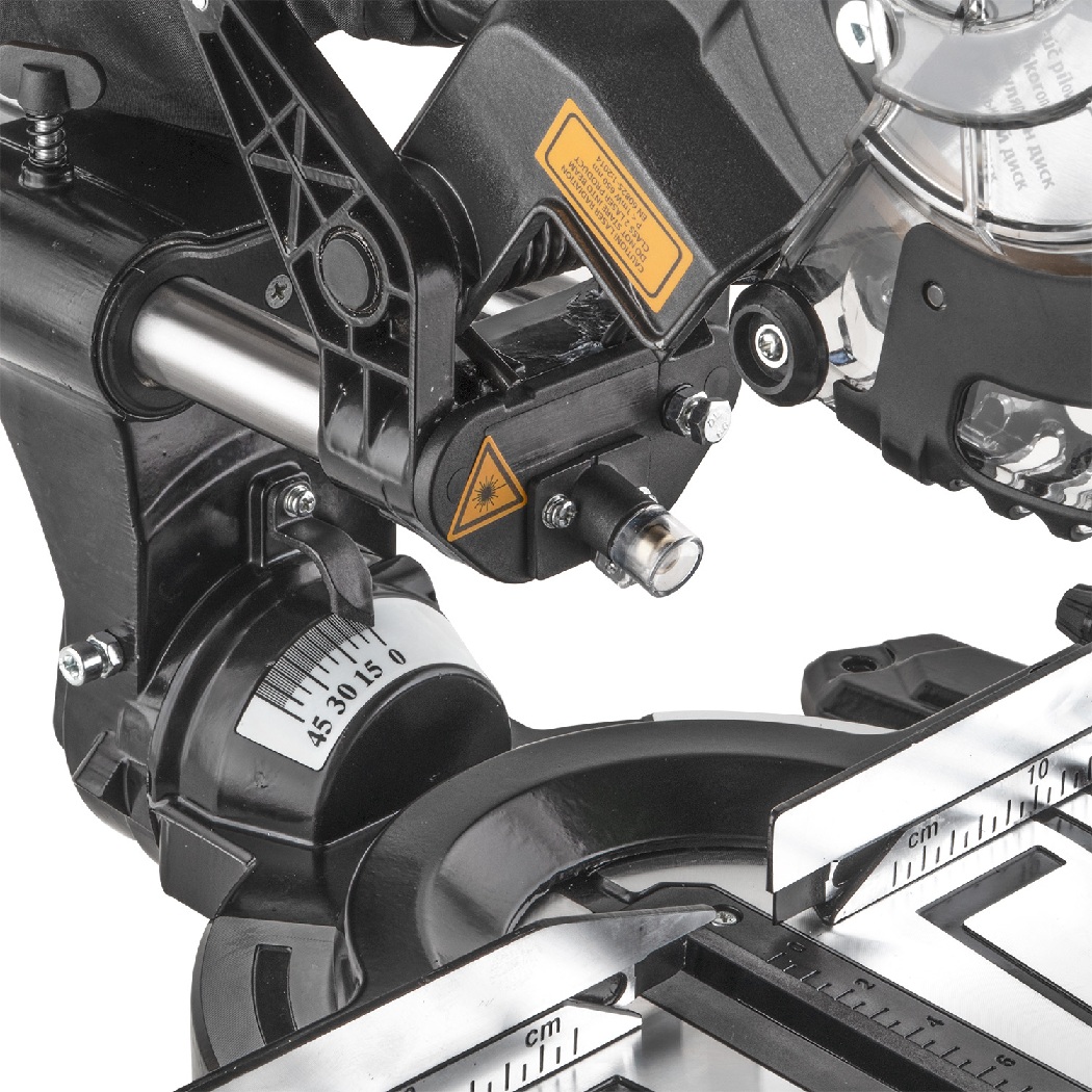 Integrovaný laser pro přesné vedení linie řezu bez nutnosti měření s vlnovou délkou 650 nm a maximálním výkonem 1 mW.