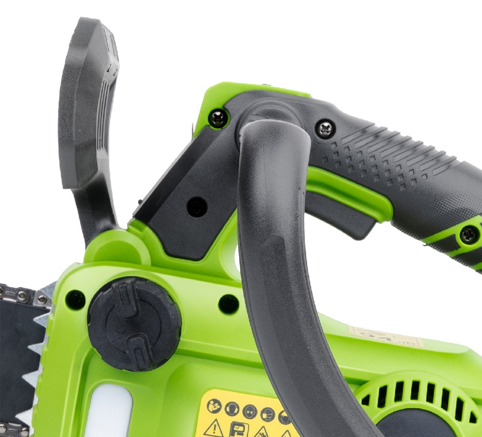 Brzdový systém umožní okamžité zastavení řetězu pro zvýšení bezpečnosti při práci.