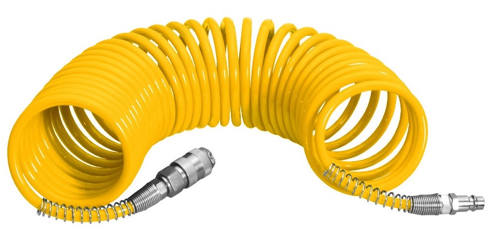 Hadice spirálová PU s rychlospojkami STOP je svým zpracováním předurčena pro rozvody stlačeného vzduchu a připojování vzduchového nářadí ke kompresoru. Zakončení je provedeno kvalitními ocelovými rychlospojkami.
