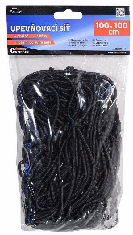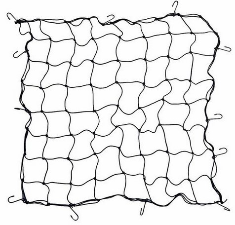 Pružná upevňovací síť velikosti 100 x 100 cm, která je pro snadné upnutí vybavena 12 háčky.