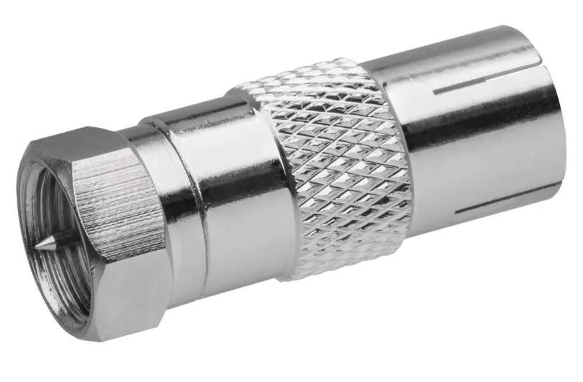 Redukce F-vidlice s IEC zásuvkou M5850. Redukce je určena k napojení na koaxiální kabel.
