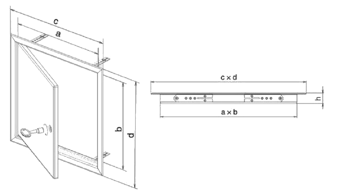 Použití: Revizní dvířka se zámkem do svislých i vodorovných (ne pochozích) stavebních konstrukcí. Jednoduchá montáž, otevírání vpravo i vlevo. Zámek se otevírá čtyřhraným trnovým klíčem 7 x 7 mm, který lze objednat zvlášť.