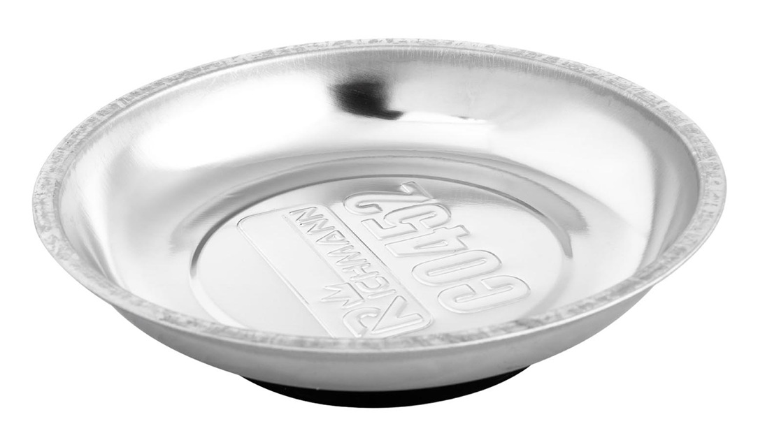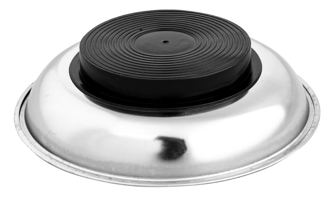 Kulatá magnetická miska o průměru 150 mm je vybavena silným magnetem, potaženým gumou, která zabraňuje poškrábání povrchu.