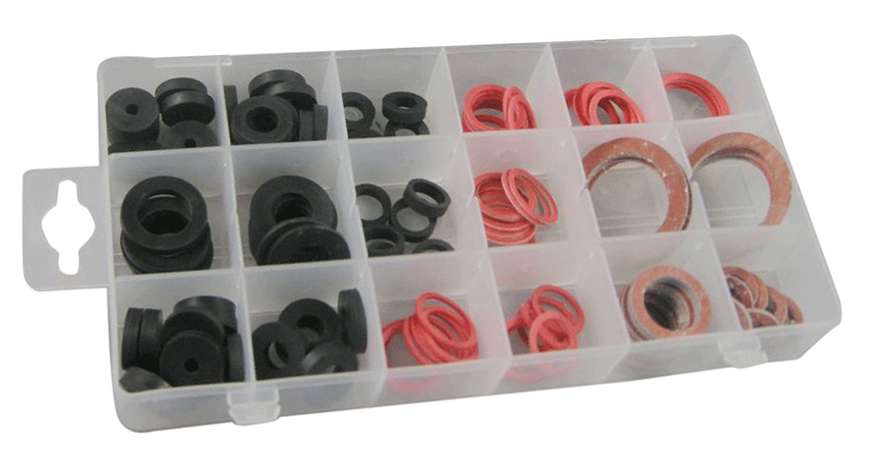 Sada 141 kusů sanitárních těsnění v různých velikostech.