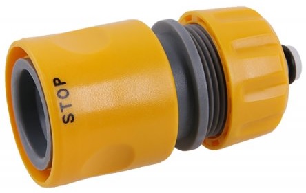Stop pojistka pro samovolné uzavření proudu vody při sejmutí pistole, zavlažovače nebo při přepínání na jiný kohout - tlak vody svým vlastním tlakem uzavře těsnící pohyblivou klapku uvnitř rychlospojky.