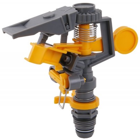 Impulzní plastový zavlažovač s nastavitelným rozsahem postřiku.