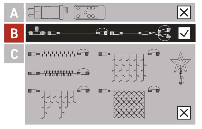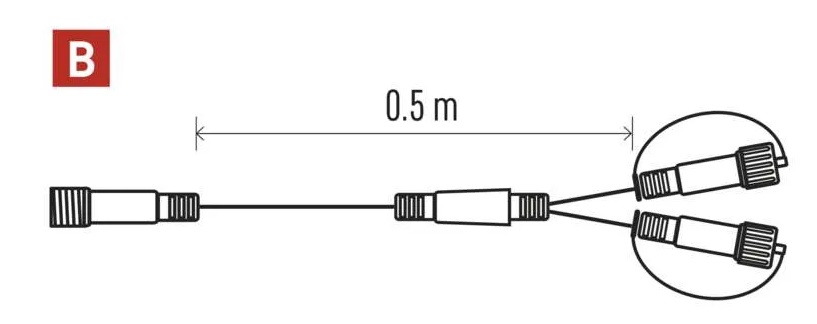 Díky rozbočovači můžete LED řetězy větvit do více směrů.