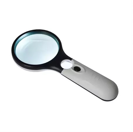 Skládá se ze dvou čoček: hlavní a přídavné, se zvětšením 2,5x a 45x. Přídavná čočka se nachází u rukojeti. To je velmi užitečné při čtení textů a ke zkoumání nepatrných detailů na předmětech. Zabudované LED osvětlení zajišťuje rovnoměrné osvětlení pozorovaného objektu světlem, jehož barva je příjemná pro oko. Napájení zajišťují tři baterie AAA (nejsou součástí dodávky). K zapínání a vypínání osvětlení slouží tlačítko na rukojeti.