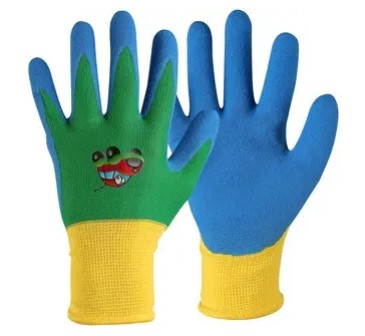 Dětské rukavice s potiskem a pružnou manžetou, povrstvené nitrilem.