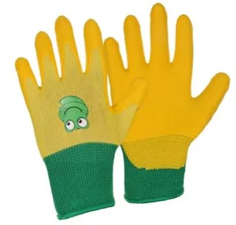 Dětské rukavice s potiskem a pružnou manžetou, povrstvené nitrilem.