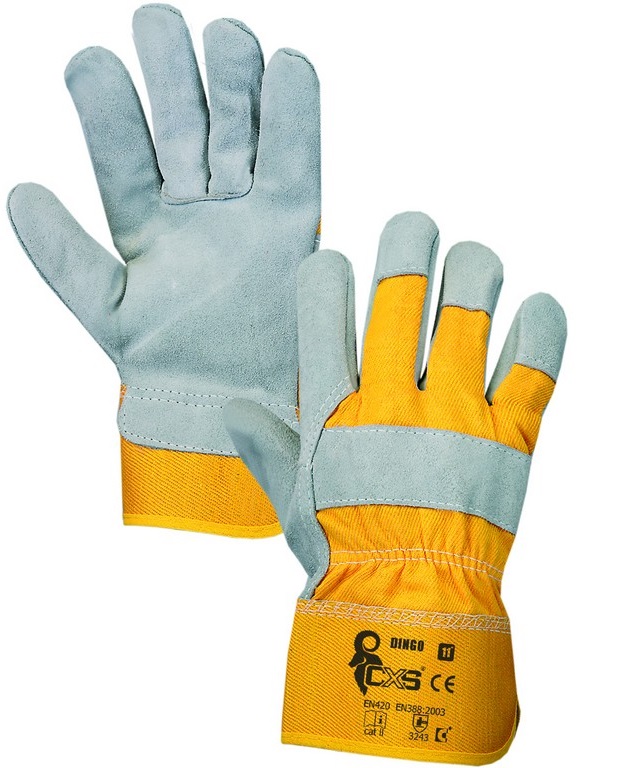 Rukavice DINGO vel. 11 kombinované kůže/tkanina, šedo-žluté