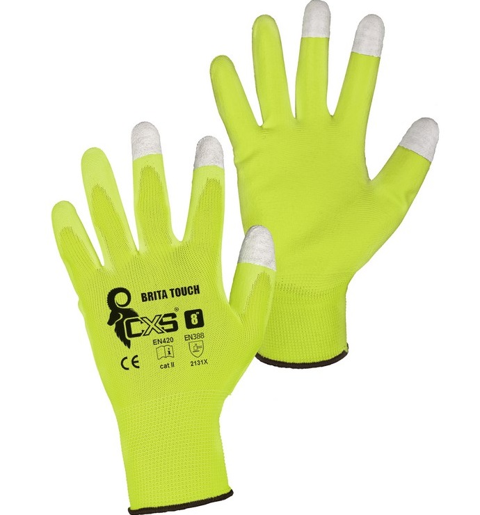 Rukavice BRITA touch vel. 8 máčené v PU, fosforově žlutá