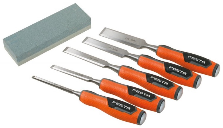 Sada dlátek FESTA 5 ks s brouskem a ergonomickou plastovou rukojetí, úderová plocha.