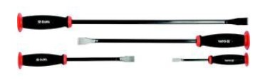 Páčidla údérová z kované oceli, vytvrzené na HRC38. Sada 4 ks. Rukojeť v plastovém krytu. Baleno v plastové pouzdře.