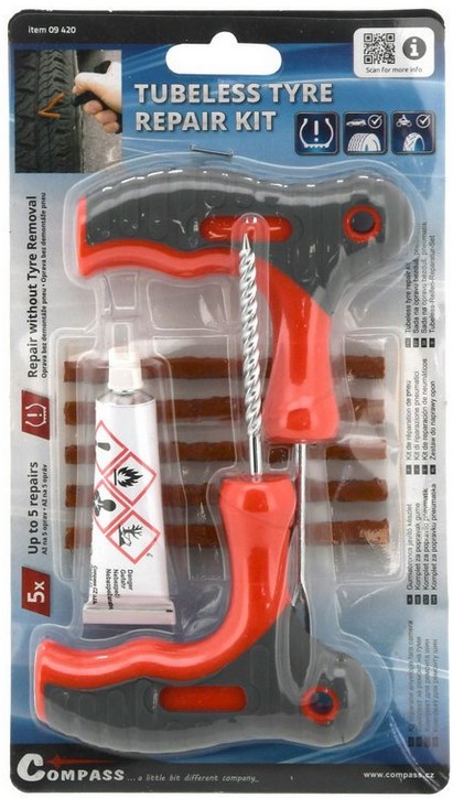 Sada pro rychlé opravy bezdušových pneumatik, bez nutnosti demontáže pláště z disku.