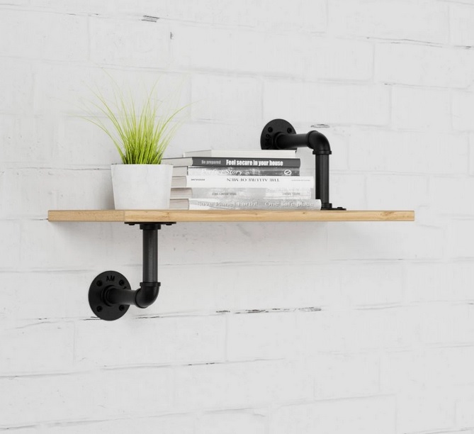 Unikátní sestava pro výrobu jednoduché police z trubkového regálového systému Rusticline.