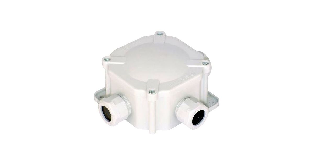 Vodotěsná elektroinstalační krabice acidur s vývodkami a vysokým krytím IP67. Způsob montáže na stěnu/strop.