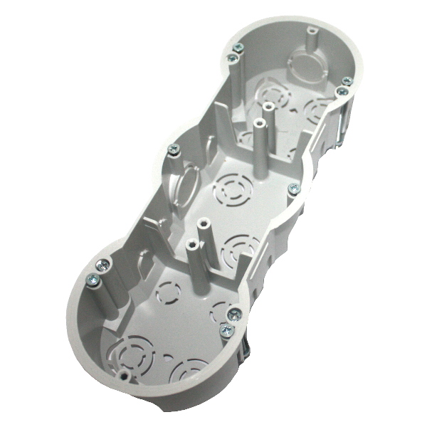 Krabice instalační plastová trojnásobná do sádrokartonu. Pro přístroje s trojnásobným rámečkem. Pro povrchy se stupněm hořlavosti A, B, C1, C2 (podle ČSN 730862).