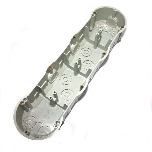 Krabice instalační plastová čtyřnásobná do sádrokartonu. Pro přístroje s čtyřnásobným rámečkem. Pro povrchy se stupněm hořlavosti A, B, C1, C2 (podle ČSN 730862).