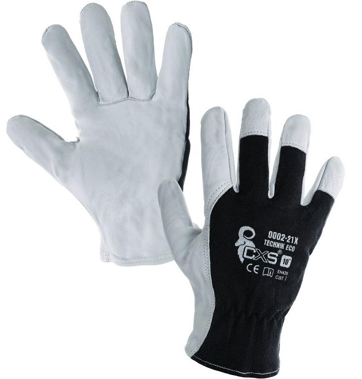 Rukavice TECHNIK EKO vel. 8 kombinované kůže/úplet černý - 12 párů/bal.