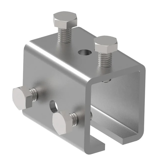 Jedná se o ocelový díl s povrchovou úpravou zinek, určený k montáži závěsného C-profilu ke stropu či horní nosné konstrukci.