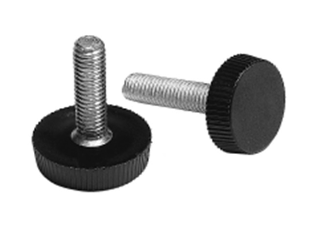 Stavěcí šroub kulatý - rádlovaný. Barva: černá. Materiál: PE, pozink. šroub.