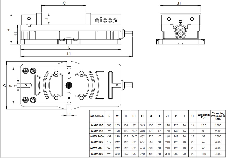 Čelisti svěráku jsou kaleny, na všech upínacích plochách broušeny a opatřeny prizmatickými drážkami pro upínání rotačních dílů.