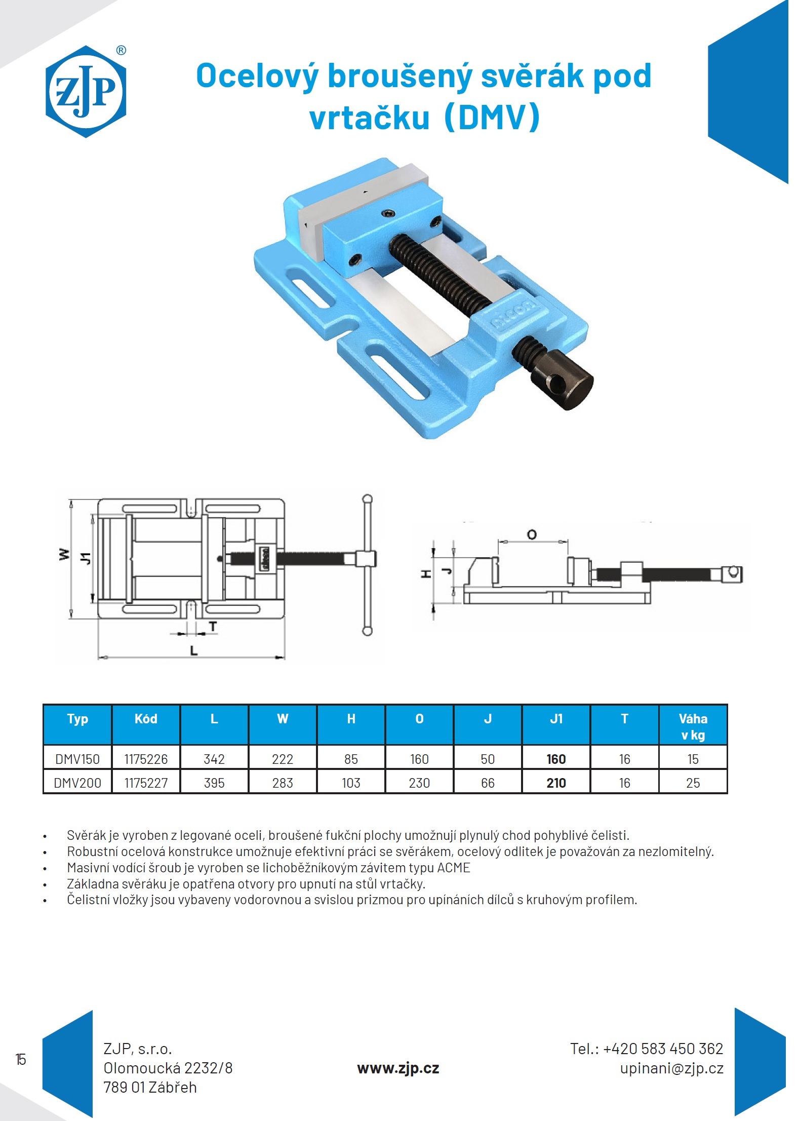 Strojní svěrák příruční DMV200 (210x200x66) ocelový, broušený